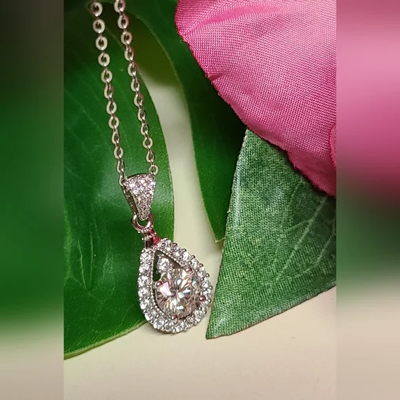 Gorgeous Moissanite S925 pendant 16" S925 silver necklace. Brilliant shine! Beautiful cut and design. Almost as strong as a diamond.