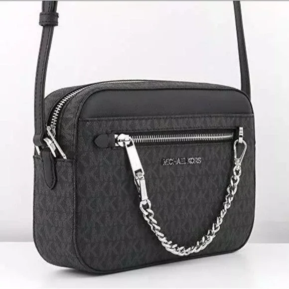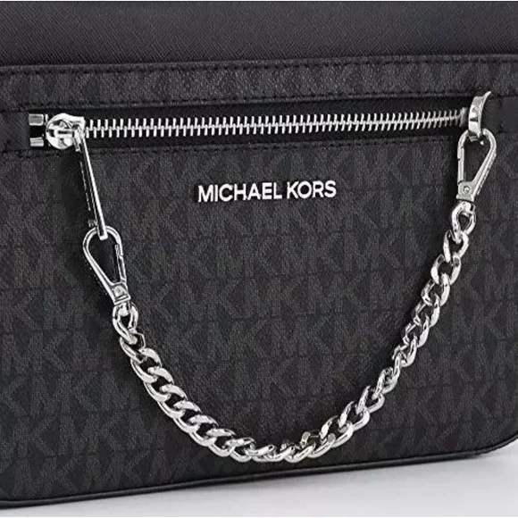 Michael Kors Jet Set Large Logo Crossbody Bag Black New