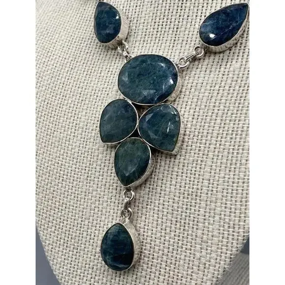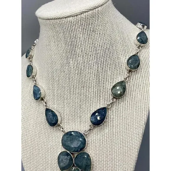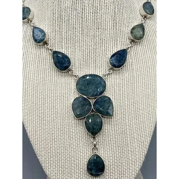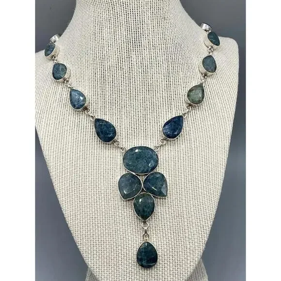 Dominican RARE Larimar Teardrop Gemstone Handmade 925 Sterling Silver NecklaceListing and template services provided by inkFrog
