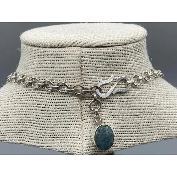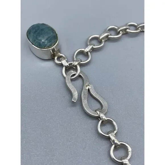 Dominican RARE Larimar Teardrop Gemstone Handmade 925 Sterling Silver Necklace