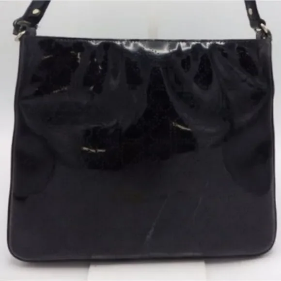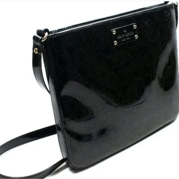 Kate Spade Darby Metro Spade Black Slim Swing bag/crossbody.Black patent leather, beige lining, zipper closure, good preowned condition. Scuff marks on the outside of the bag (see last picture) Bottom of interior lining has small pen marks.Measurements:Strap Drop: 22.5" Height: 9.25"Width: 11"Style #WKRU1877Original amount $168item#166