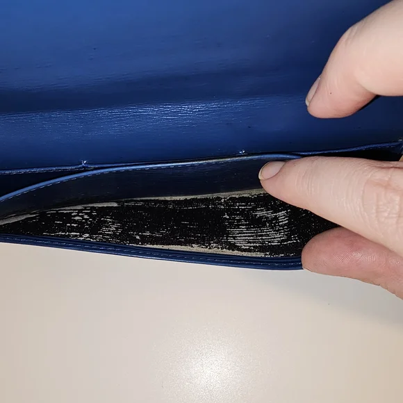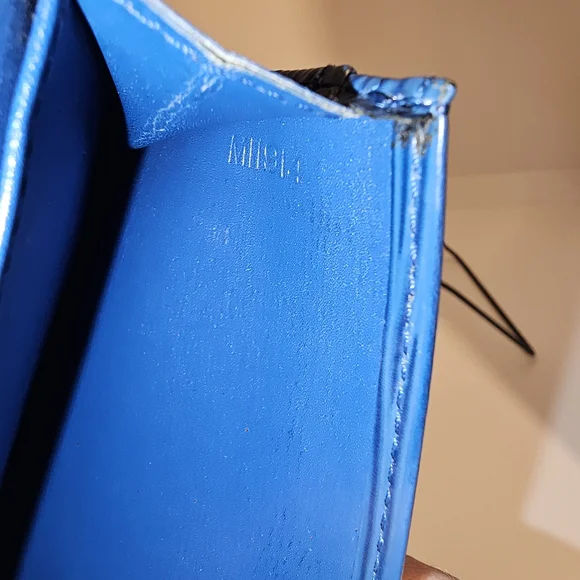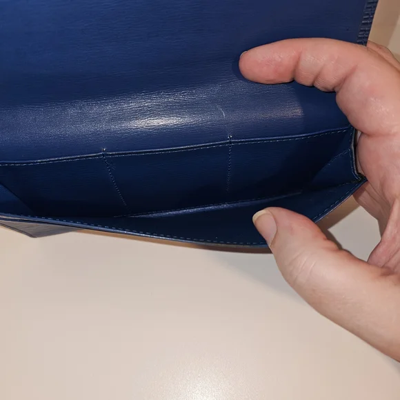 Louis Vuitton elegant blue epi wallet. Features a textured design. Is pre-loved and in good condition. Very minor wear on corners and previous signs of pealing. Ran hand across pocket and didnt see signs of active pealing. Wallet is clean. See pictures. Sold as is. No refunds or exchanges.