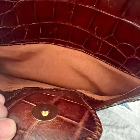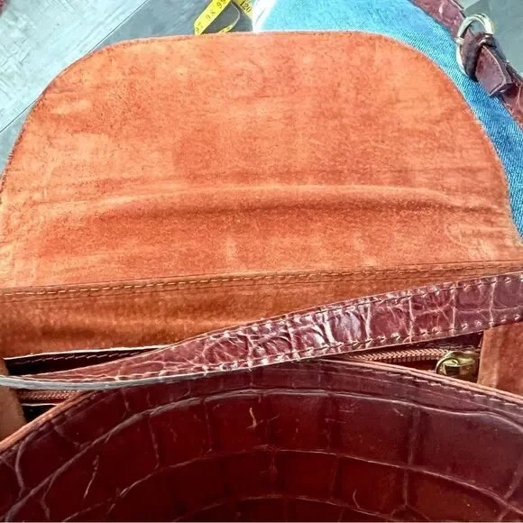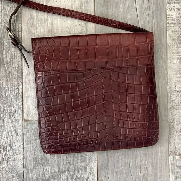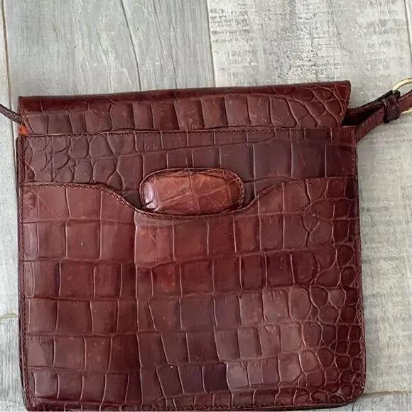 Vtg Joan & David Alligator Italy Brown Leather Lining Crocodile Crossbody Bag