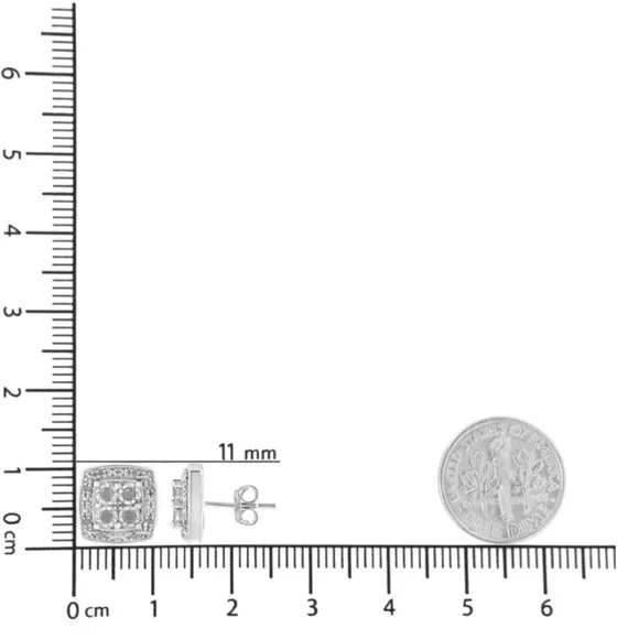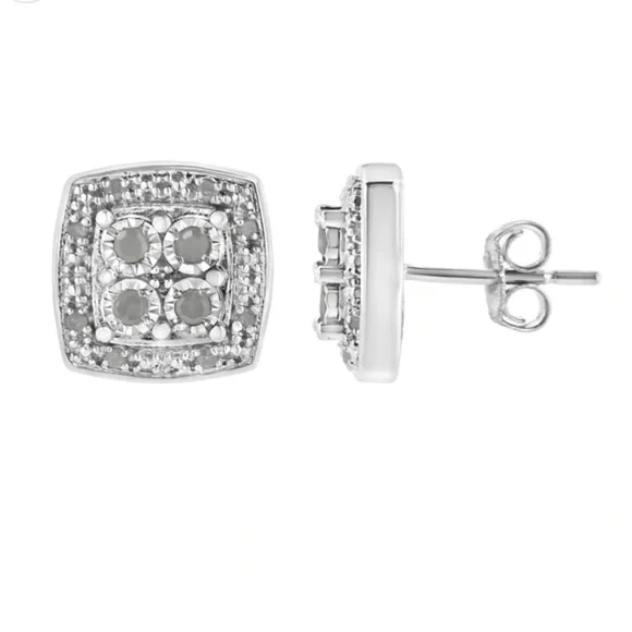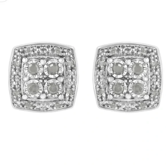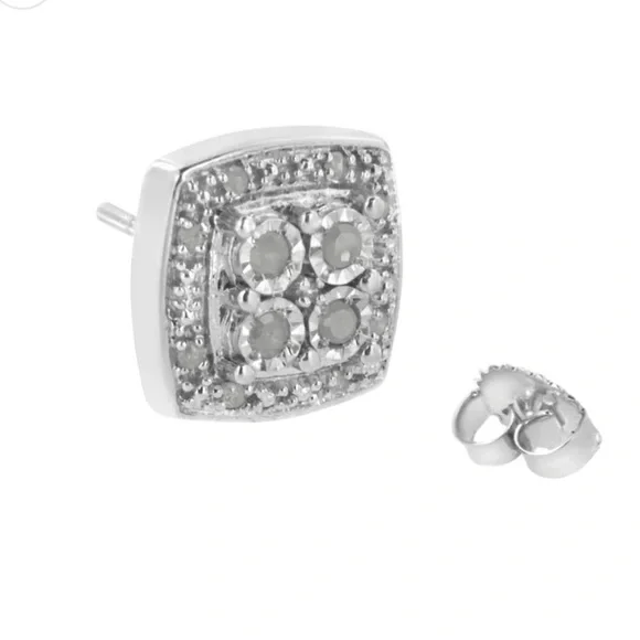 Haus of Brilliance .925 Sterling Silver 1/4 cttw Round Cut Diamond Square Shape Milgrain Stud Earrings (I-J Color, I3 Clarity)New .925 Sterling silver with 1/4 carat of diamonds 4 center diamonds surrounded by smaller diamonds Push backs