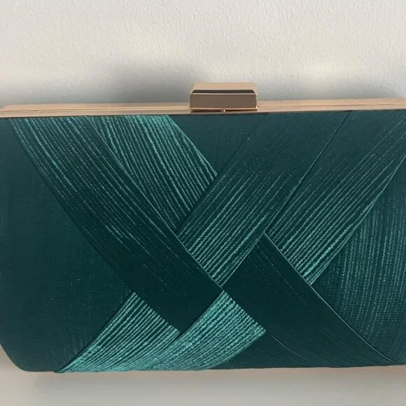 Neiman Marcus Silk Nightclub Emerald Green Clutch PurseThe Neiman Marcus Silk Nightclub Emerald Green Clutch Purse is a sophisticated and stylish accessory crafted from soft silk, satin, and durable hardware, with a polyester fabric lining for a luxurious yet sturdy finish.With its elegant design, this clutch features a fashionable tassel accent on one side and includes a removable chain strap, allowing you to style it as a clutch, handbag, shoulder bag, or crossbody bag for versatile wear.Spacious yet compact, this clutch measures 6.9" x 2.8" x 4.5", providing ample room for essentials like your phone, credit cards, lipstick, glasses, and a small wallet, making it a practical yet glamorous choice.Perfect for any occasion, this chic evening bag is ideal for weddings, parties, fashion shows, ceremonies, shopping, dinner dates, and formal events.A thoughtful and elegant gift for a girlfriend, wife, daughter, or friend, this clutch makes a perfect present for birthdays, anniversaries, holidays, and special celebrations.Shipped out today!