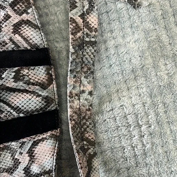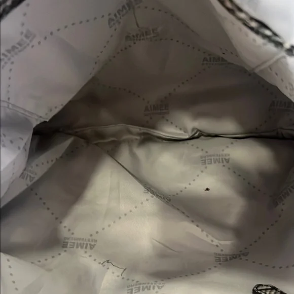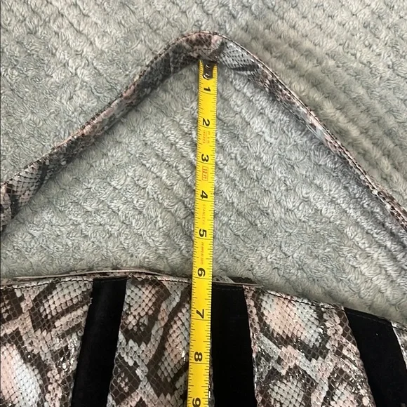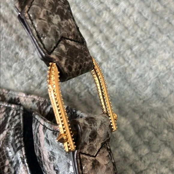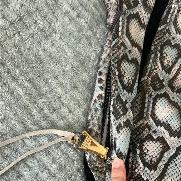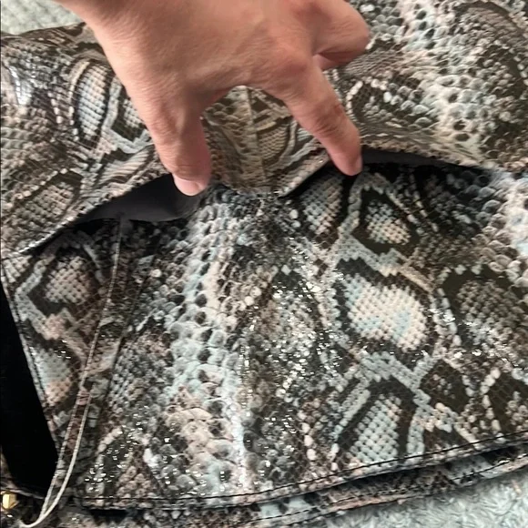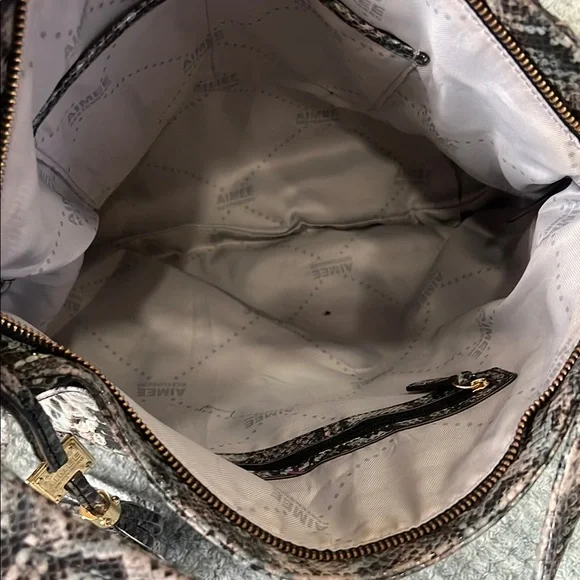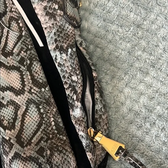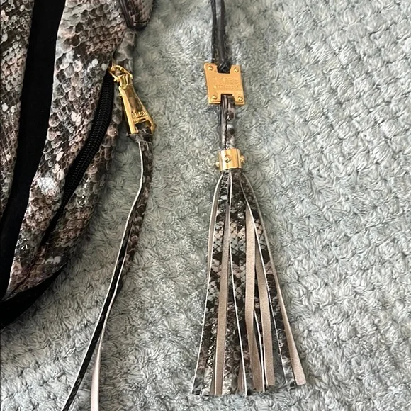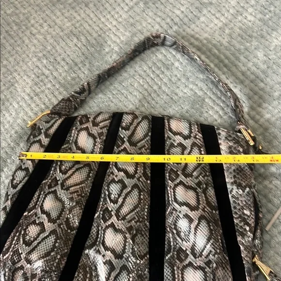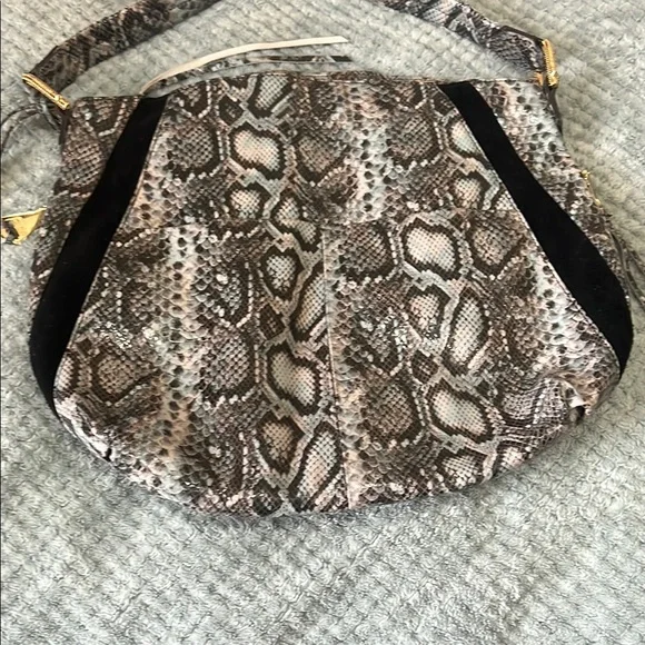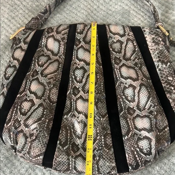 Pre owned.Aimee Kestenberg Leather Suede Hobo Bag Tuscany Soft Grey Light Blue Cobra. Chic snake print design. Bold black stripe accents. Ideal for stylish outings.