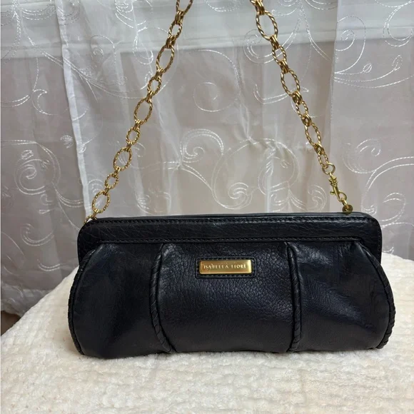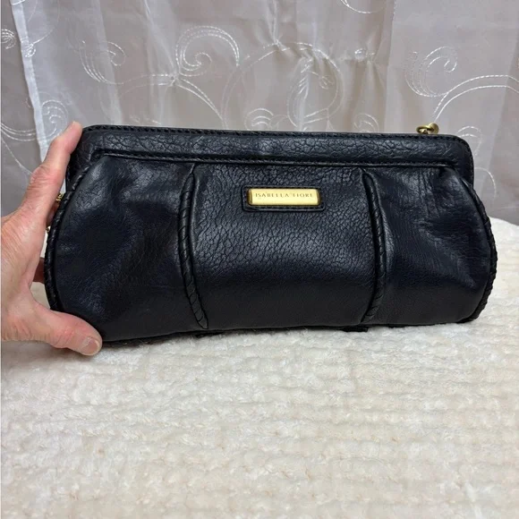 Isabella Fiore Et Cetera French Twist Black Leather Clutch