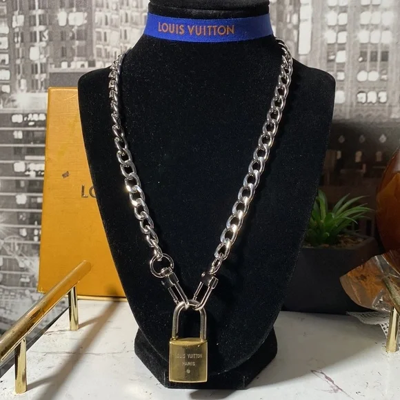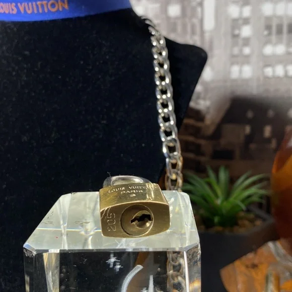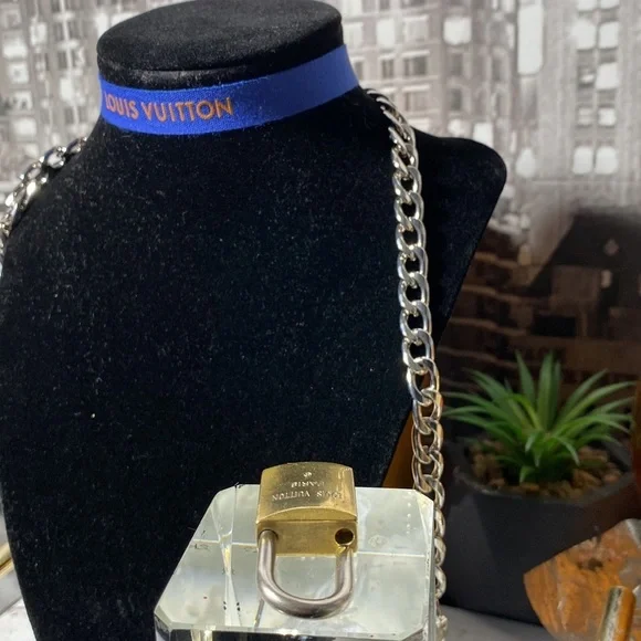 Authentic Rare Louis Vuitton two toned Lock on Chain to wear as choker necklace. LV lock is in preowned condition with normal signs of wear. Number 205 Comes on unbranded chain. Bag box not included. Please see all pics and ask any questions that you may have prior to purchasing to avoid returns or cancellation.