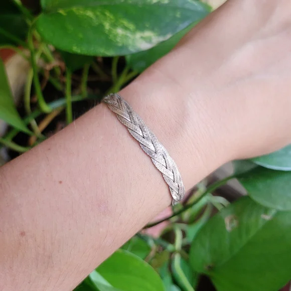 Vintage Dainty 925 Sterling Silver Italian Braided Herringbone Woven Bracelet