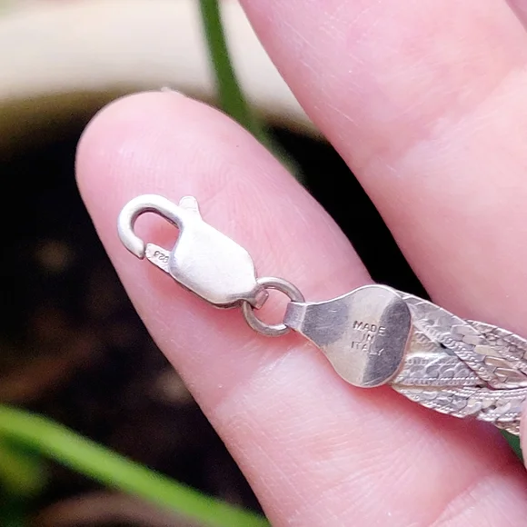 Vintage Dainty 925 Sterling Silver Italian Braided Herringbone Woven Chain Bracelet & Anklet. Approx 6.5" around. Beautiful...._____boho bohemian vintage stock unworn new nwot...
