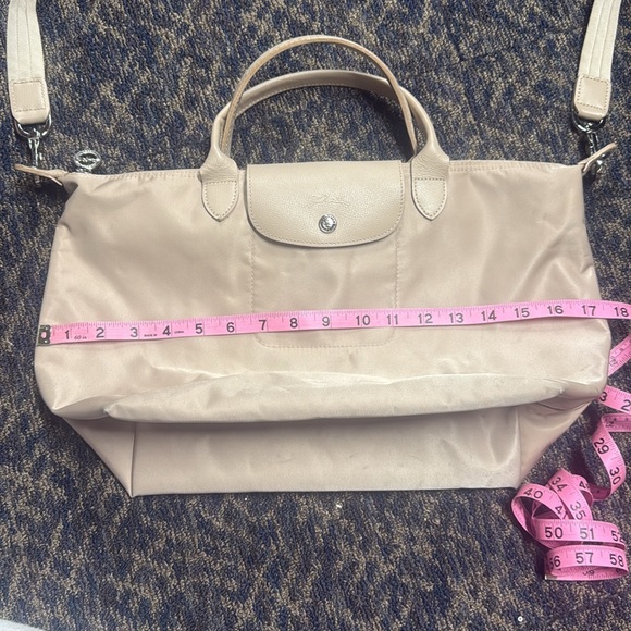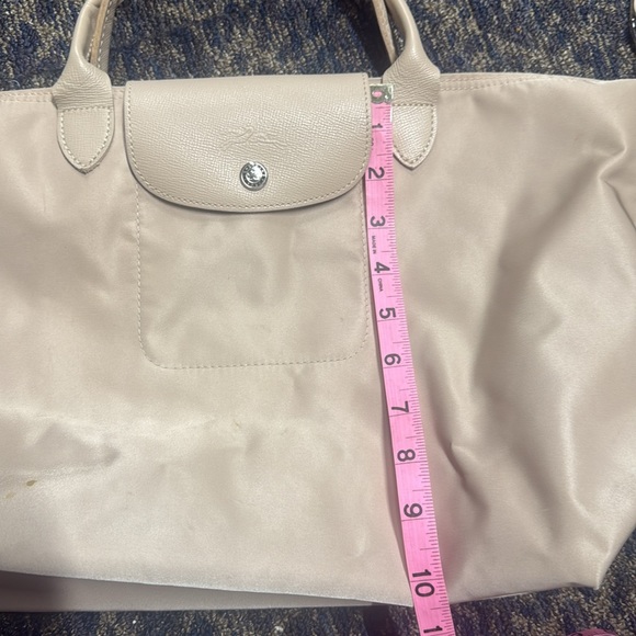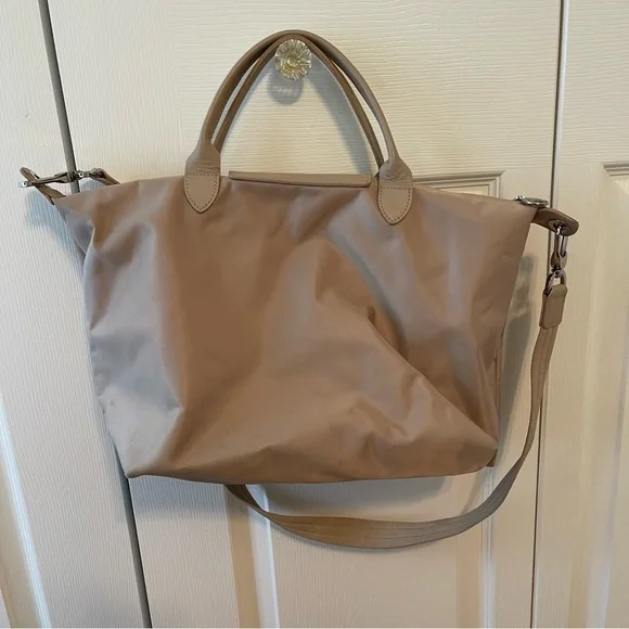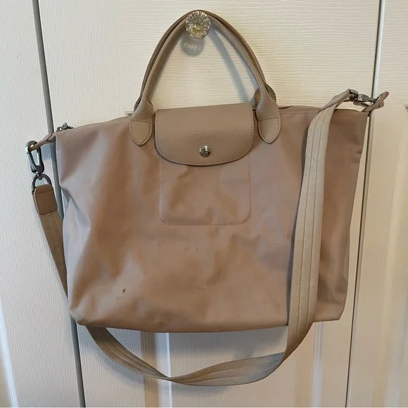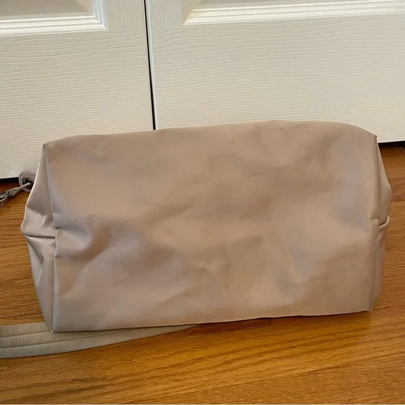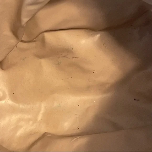 This satchel is in good condition with some small stains as pictured. Beige/khaki color. Make an offer!