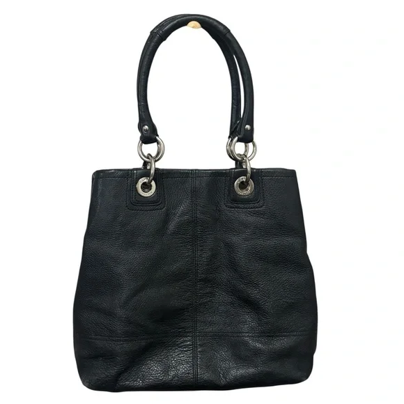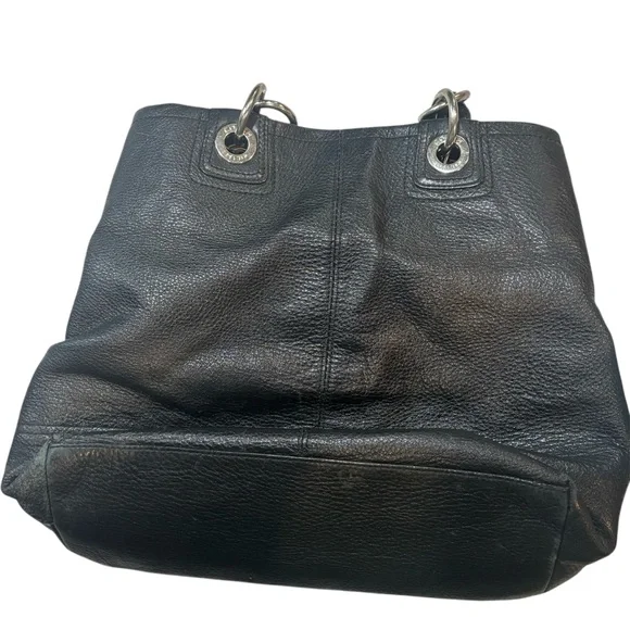 This Coach Y2K Vintage Hampton Black pebbled leather purse features a classic rectangular shape with a turn lock closure and brass hardware accents. The medium-sized bag has double black leather handles and green lining, making it perfect for various occasions including travel, parties, casual outings, formal events, workwear, and business meetings. With a vintage design and Y2K style, this hobo bag also includes features such as inner and outer pockets, bottom studs, and a lined interior for added functionality. Ideal for women looking for a timeless and stylish accessory from the iconic Coach brand.very good pre owned condition. Spot cleaned - has pen marks and other markings on liner. Some scratches on hardware.I am committed to providing you with exceptional customer service so please don’t hesitate to ask any additional questions. I am more than happy to assist.All items come from a smoke free environment.I can ship today! Thanks for looking!!