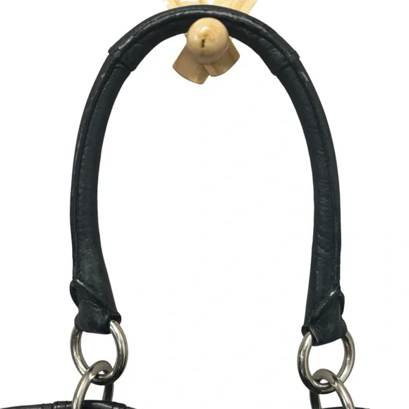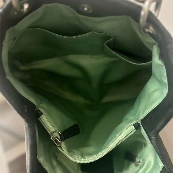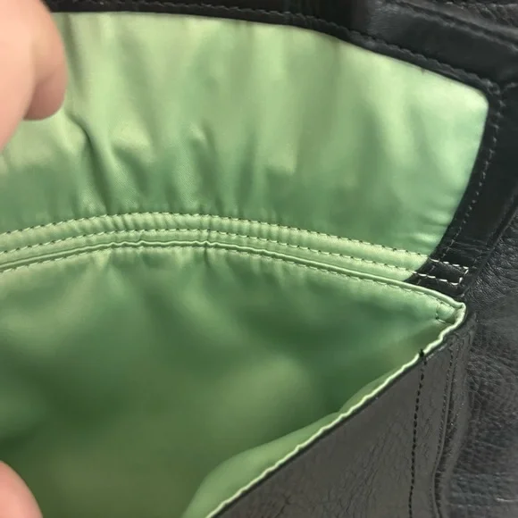Coach Y2K Vintage Hampton Black pebbled leather purse green lining USED