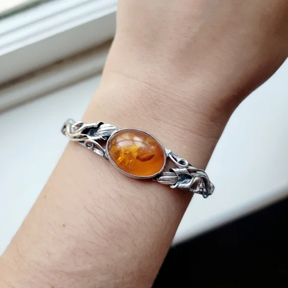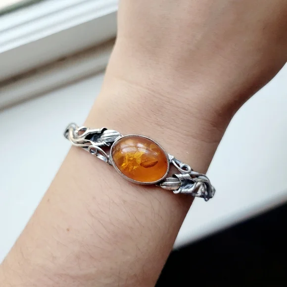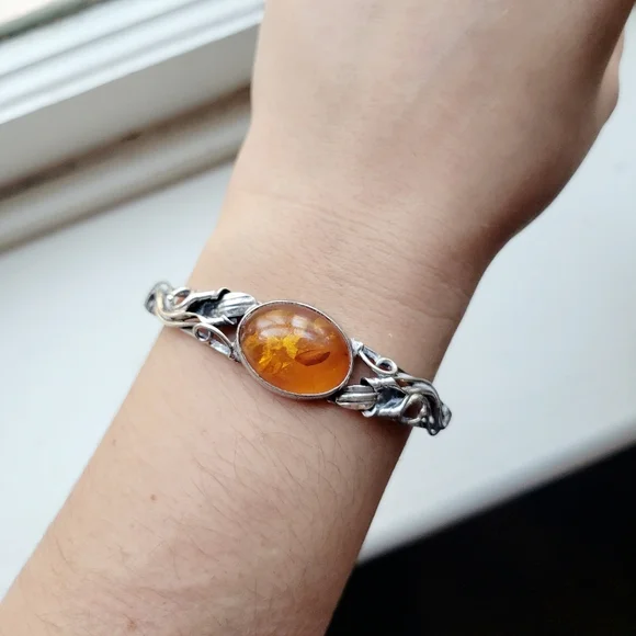 Vintage Ornate Silver Amber Bracelet