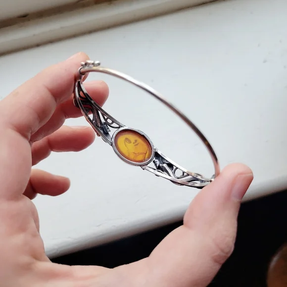 Vintage Ornate Silver Amber Bracelet. Approx 6.9" around. Beautiful....____gift present native american tribal style estate boutique womens womans bead beads beaded dainty jewelry gift natural stone stones gem gems gemstone gemstones present dainty sbbU5