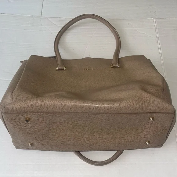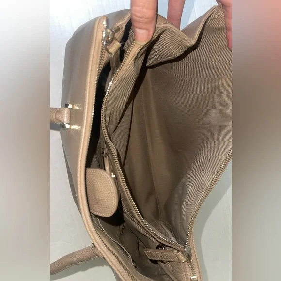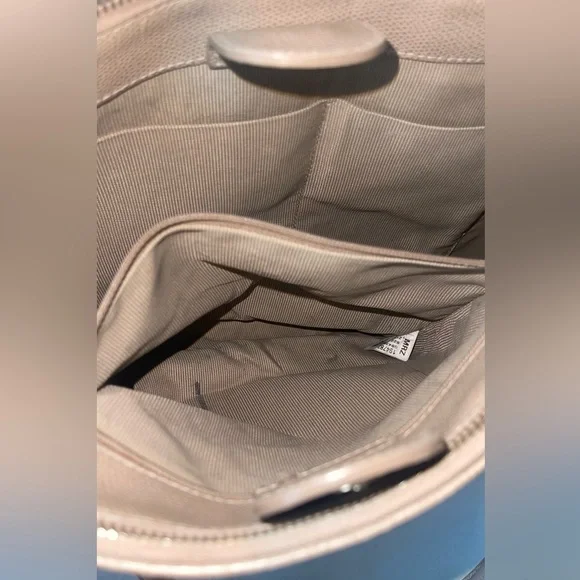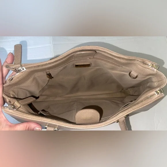 Pre OwnedTwo side full length zip compartmentsLarge center compartmentDoes have some scuffs and spots on inside lining