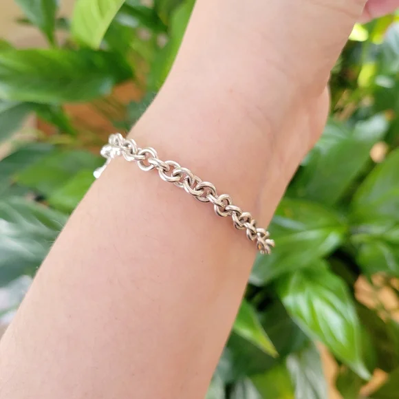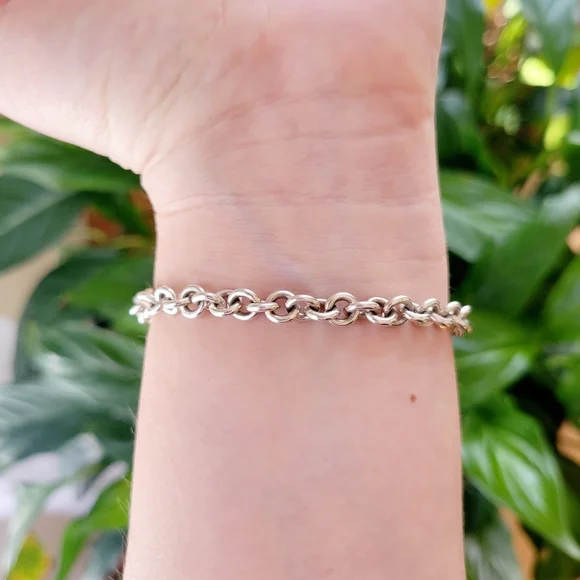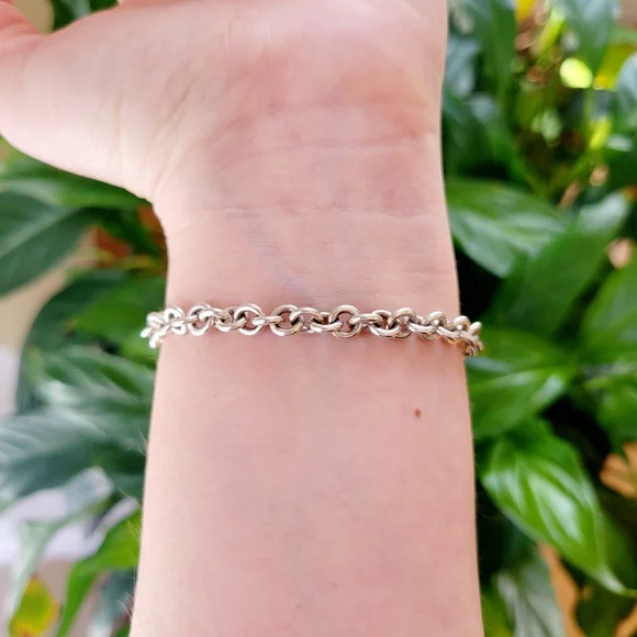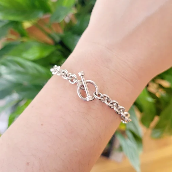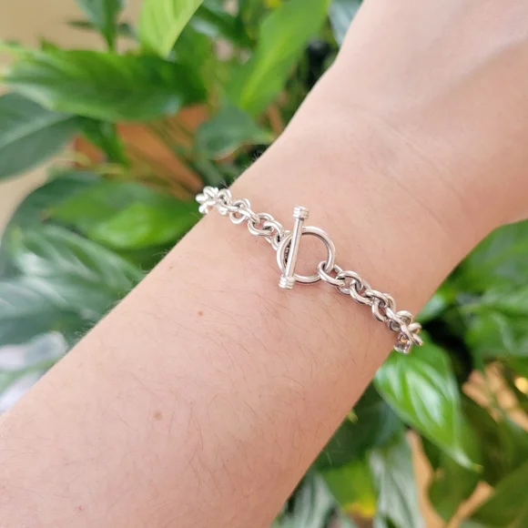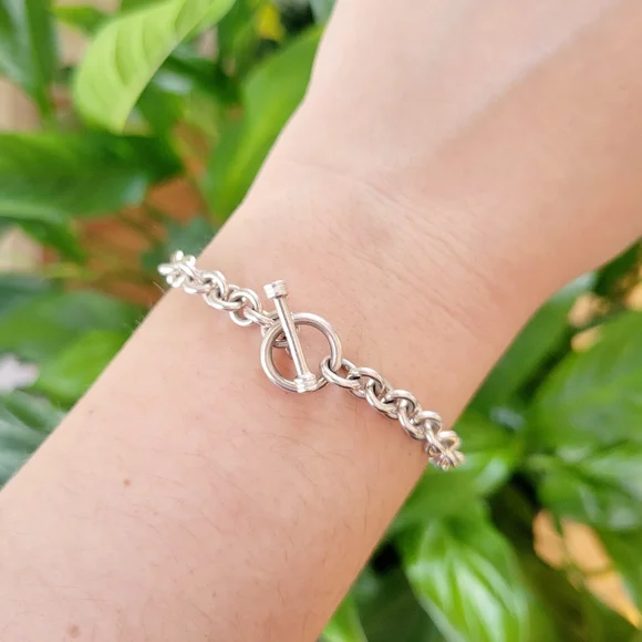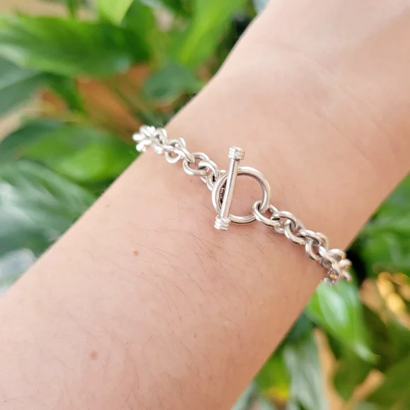 Vintage 925 Sterling Silver Heavy T-Bar Toggle Clasp Womens Womans Chain Link Bracelet. Unhallmarked but tested for sterling. Approximately 7" around. Beautiful......_______simple...