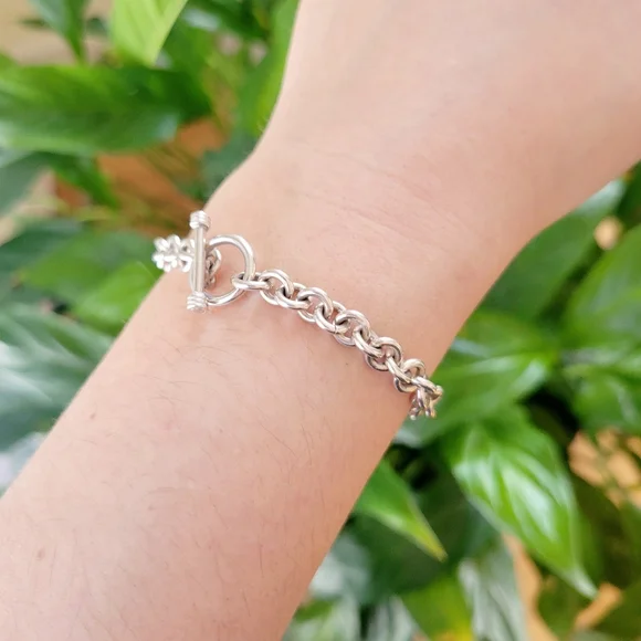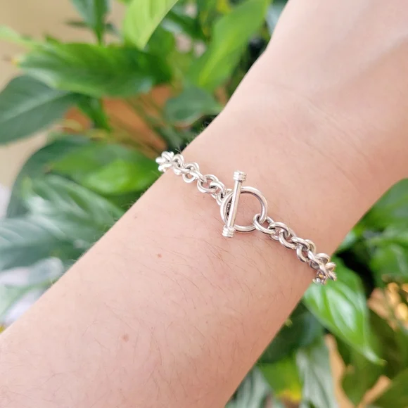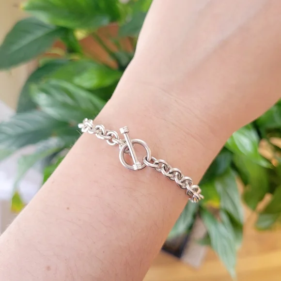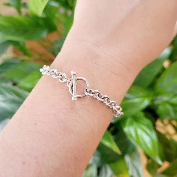 Vintage 925 Sterling Silver Heavy T-Bar Toggle Clasp Womens Chain Link Bracelet
