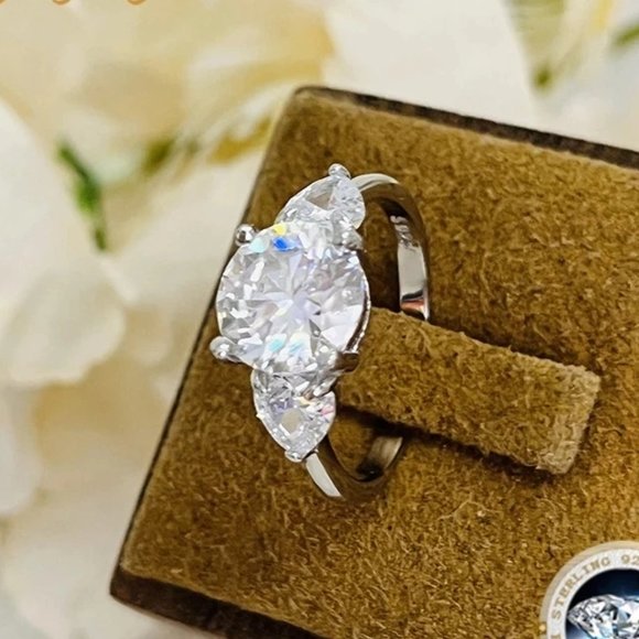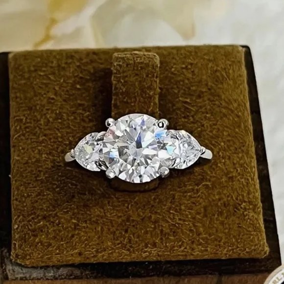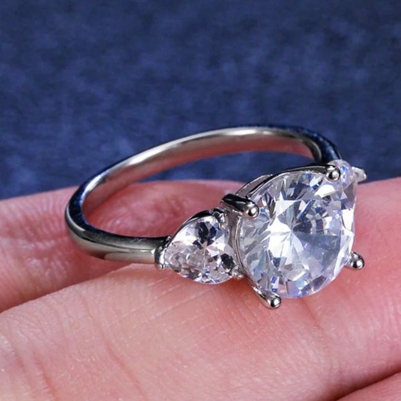 Awesome 3 GRA Certified 2.80ctw Diamond Ring. Side Stones Are Heart´sBand 18k White Gold****Take a look at my other Listings. ****Specs:Metal: Solid .925 Sterling Silver ---- " Stamped as shown in the pictures.**** NOT Silver Plated or Filled, Not Brass or Alloy ****Finish: 18K Heavy White Gold PlatedMain Stone: 1.50ctw. 9mm Moissanite Diamond " GRA Certified.Side Stones: AAAAA Cubic ZirconiaStone Quality: High Quality, Clear Sparkle.Center Stone: 1.50ctw 9mm Diameter, Round Shaped.Side Stones: 0.65ctw x 2, Heart ShapedStone Color: DStone Clarity: VVSICut Grade: Excellent (10 Hearts and 10 Arrows)Setting Of. Stones: Prong,Overall Size: 18mm Wide Across and 9mm ThickBand Size: 2mmRing sizes: 7, 8, 9Condition: New with Gift Box and GRA CertificateIf you have any questions, please feel free to contact me and I will try to answer your questions.