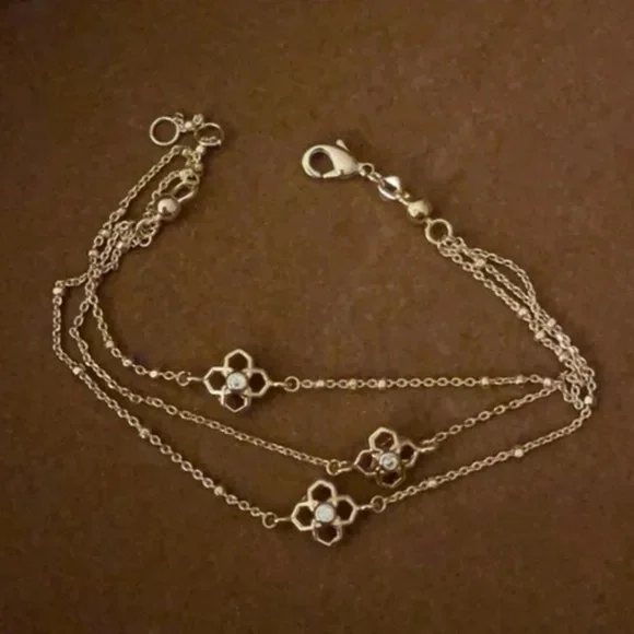It’s all about a wrist full of shine, and you´ll find just that with this Rue Multi Strand Bracelet in Gold. This textured Gold multi strand bracelet chain shows off our signature medallion in a refreshing, reimagined way. Whatever your style, the Rue Multi Strand Bracelet will be an instant staple and an easy everyday accessory in your collection. • Metal: 14k Gold Plated Over Brass• Material: Cubic Zirconia• Closure: Lobster claw• Size: 6.5", with 1" extender• Brand new. Never worn.