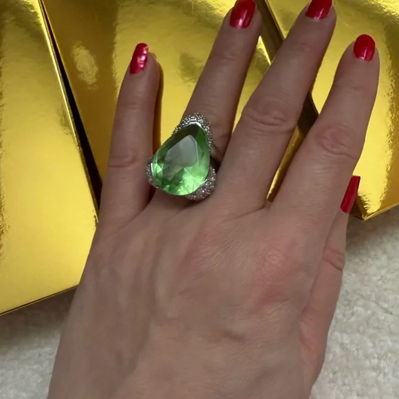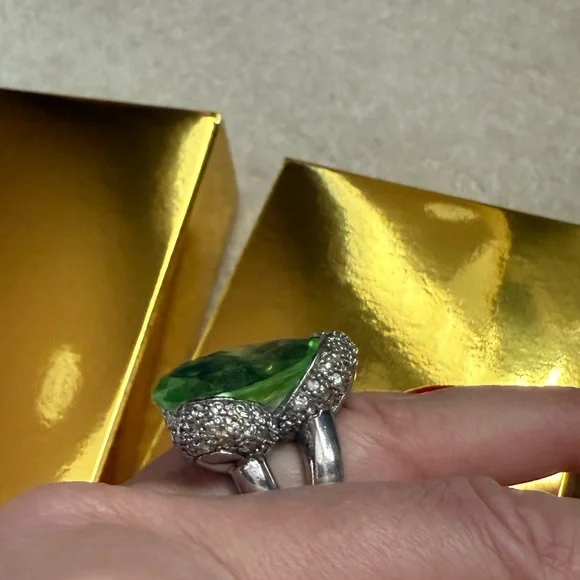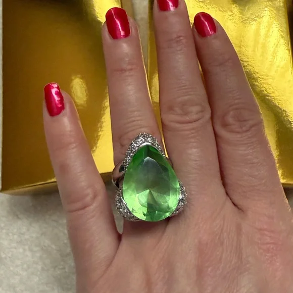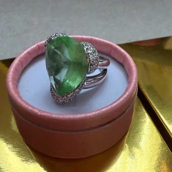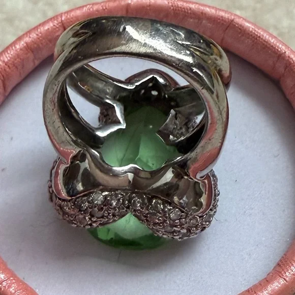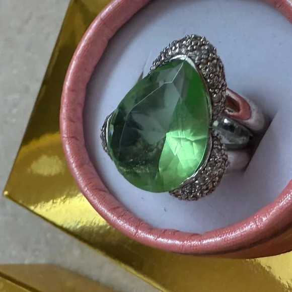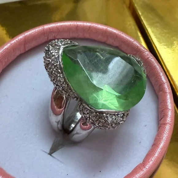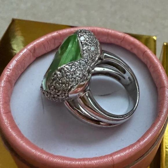 925 , 92.5% silver ring Handmade light green &crystal Gemstone Ladies Ring Size 6