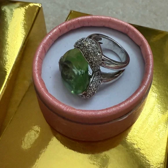 925 , 92.5% silver ring Handmade light green &crystal Gemstone Ladies Ring Size6