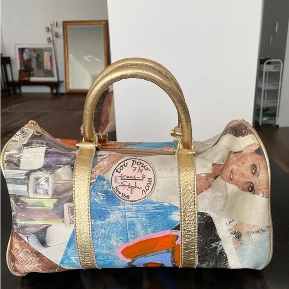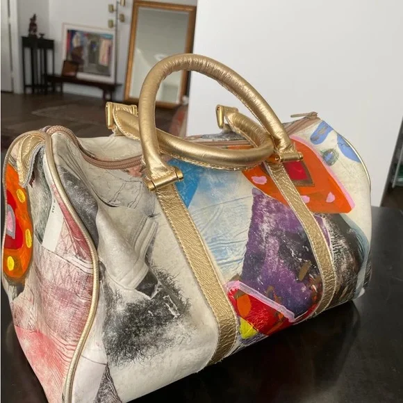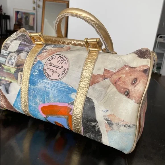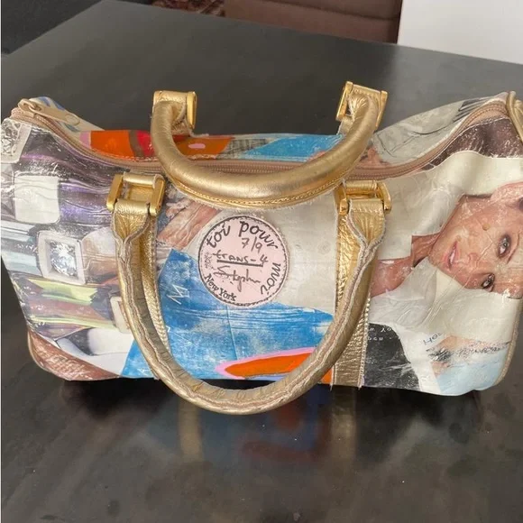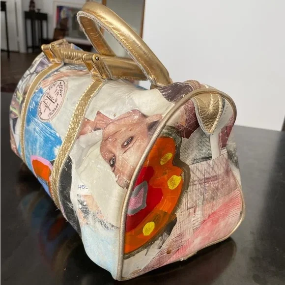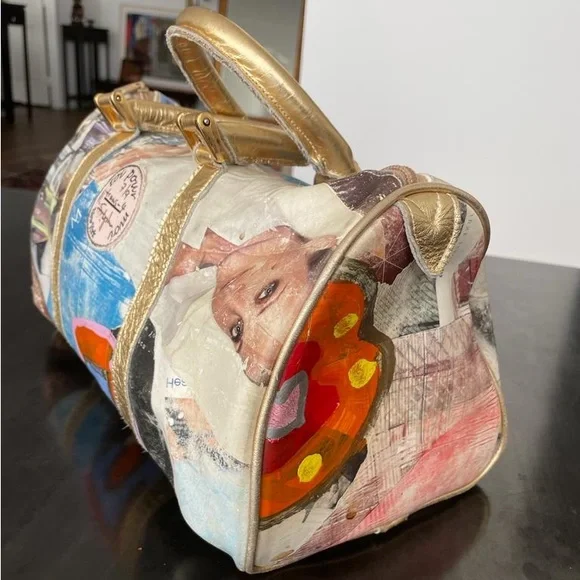 Gorgeous and Rommee canvas and leather made in NYCCollage inspired graphicsLike new16”x 8”