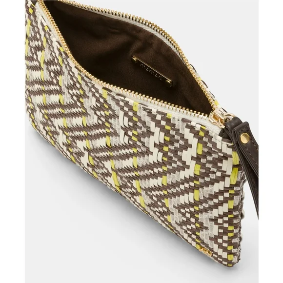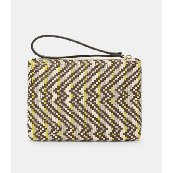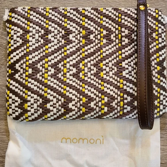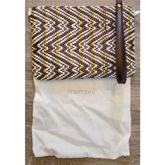 New without tags Dust bag included MOMONI FRAGUA BAG WITH WOVEN - BROWN / MULTICOLORFlat clutch bag in a weave of various materials with a neon touch. Leather strap. Metal zip closure.Height 15cm. Width 21 cm.52% Polyurethane 44% Polyester 4% Viscose