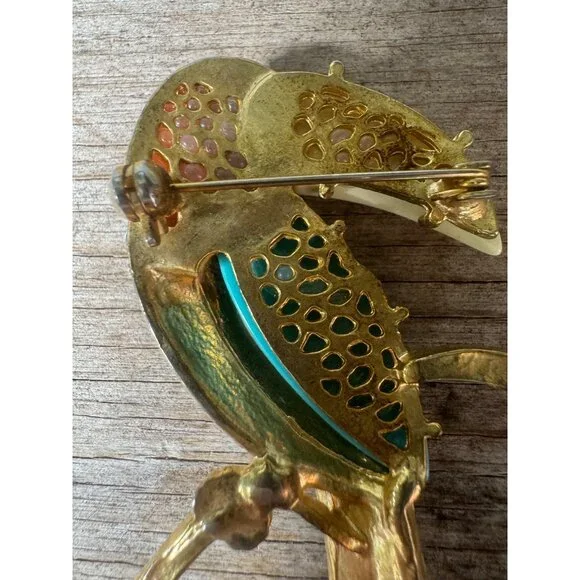 Unsigned Hattie Carnegie Enamel Rhinestone Brooch Bird Toucan Pin