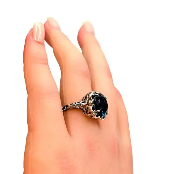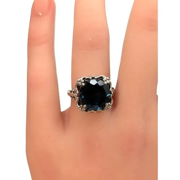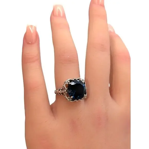 London Blue Topaz 925 Sterling Silver Filigree Ring 4.2g Size 5.5. Gorgeous stone and setting. Was sold to me as a blue spinel, but I am listing it as a London Blue Topaz because...