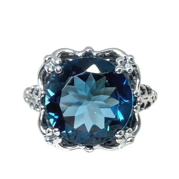 London Blue Topaz 925 Sterling Silver Filigree Ring 4.2g Size 5.5