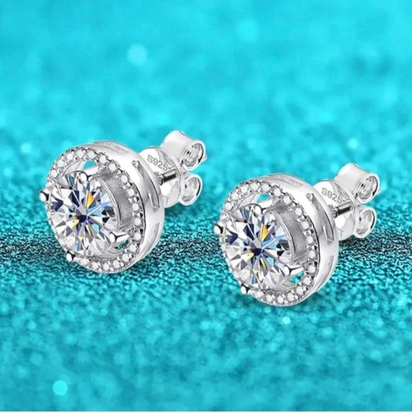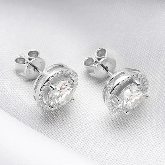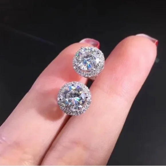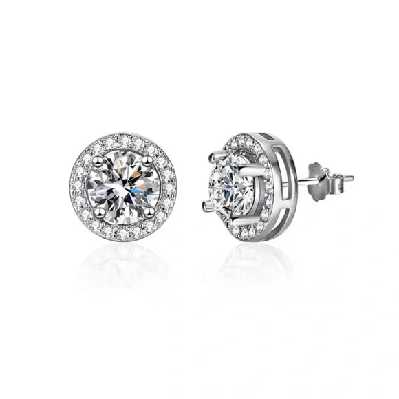 2CT+ All Moissanite Halo Stud Earrings in 925 Sterling Silver