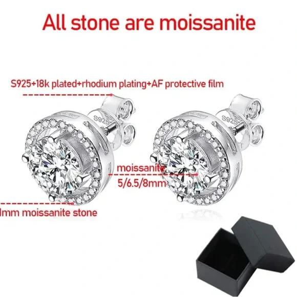 This earrings are high quality with excellent craftsmanship, halo style all stones are moissanites ( small stones are 1mm moissanite), they are handmade in solid 925 sterling...