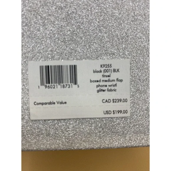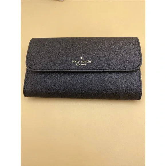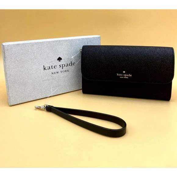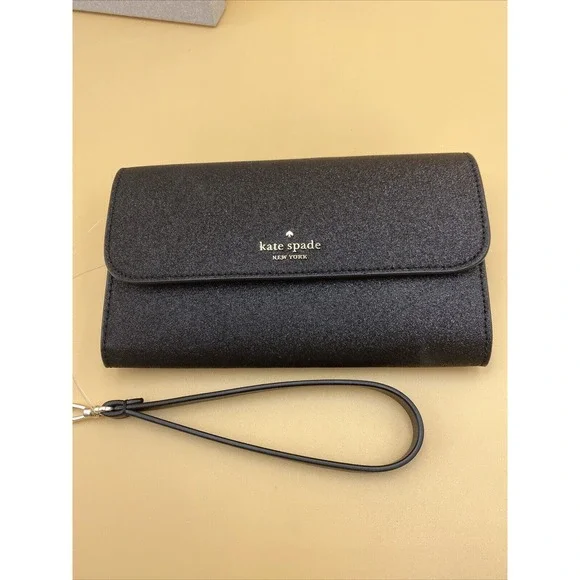 NWT Kate Spade K9255 Boxed Medium Flap Phone Wristlet Wallet Glitter BlackDetails:100% AuthenticStyle number: K9255Light gold tone hardwareFlap closure with magnetic snapSmooth...
