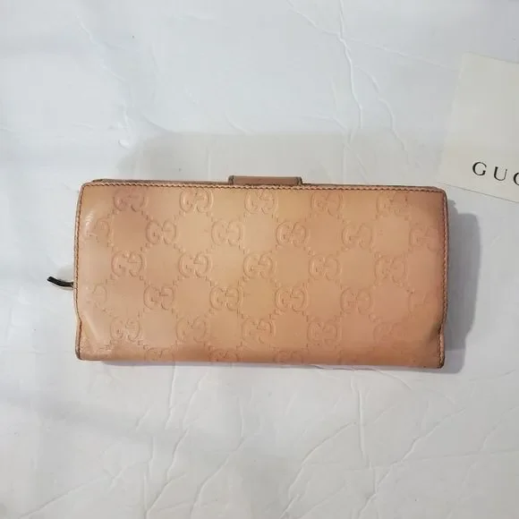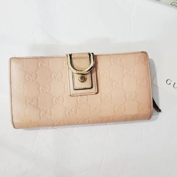 Auth Guccissima monogram GG pink zip wallet