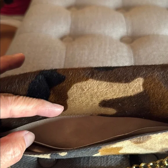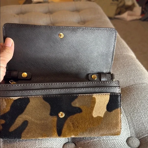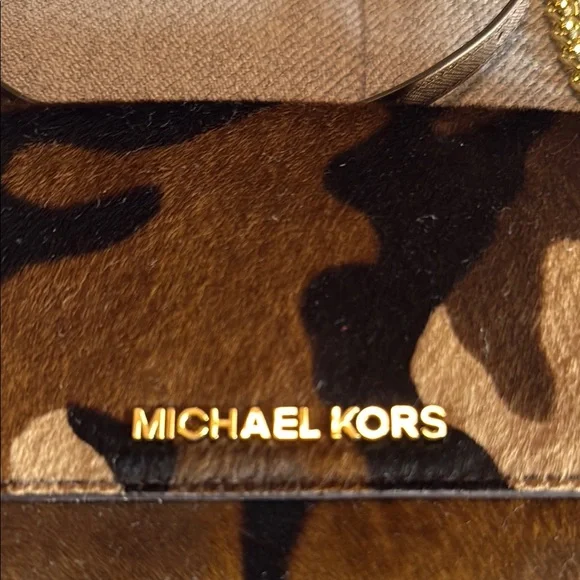 NEW NO TAGS!! Elegant crossbody bag with a camouflage pattern. Features brown and tan hues with gold chain accents. Ideal for a stylish look.RARE Michael Kors camo calf hair convertible clutch crossbody adjustable removable strap wallet bag.Real calf hair. Flap snap closure. Gold hardware. Phone pocket credit card slots. Zipper pocket see pix.Can be used as a wallet, Clutch or Crossbody!!!Love love love!!!