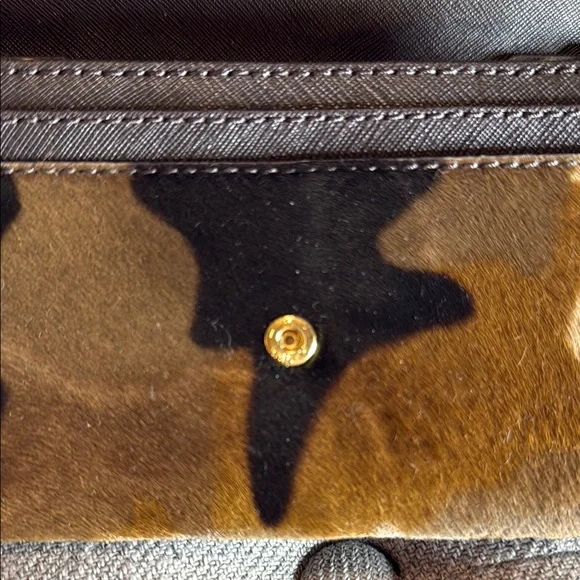 Michael Kors Brown and Tan Calf Hair Camouflage Convertible Crossbody Bag