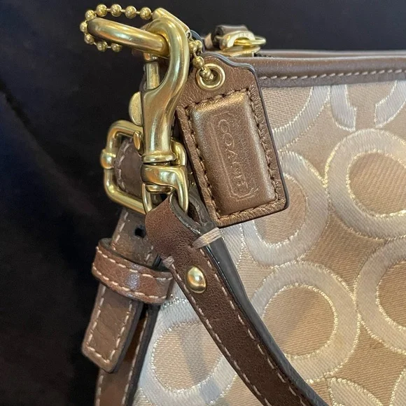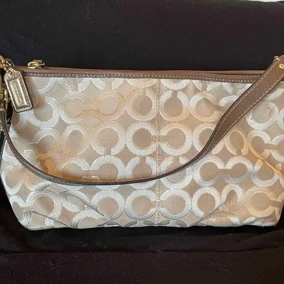 COACH MINI BAG Gold with LOGOGORGEOUS Mini Bag Interior -one pocket,flawless Condition-Excellent ,like NewFeel Free to ask any questions?Sales final no returns.