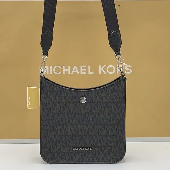 MICHAEL KORS Briley Small Logo Messenger Bag Black signature colorFeaturing our Signature logo print, the Briley is a fresh take on the messenger bag. Its adjustable crossbody strap and organized interior make it the ultimate travel companion––and it’s the perfect size to keep your wallet, lipstick and keys in check. Style it with a pair of joggers for a day of back-to-back plans.DETAILS• Messenger bag • BLACK SIGNATURE COLOR GREEN COLOR • Logo-print canvas • 69% coated canvas/17% polyester/13% cotton/1% polyurethane • Silver -tone hardware • 7.75”W X 7.75”H X 2.5”D • Exterior details: slip pocket • Interior details: back slip pocket/front slip pocket • Lining: 100% polyester • Snap fastening • Dust bag not included • Imported