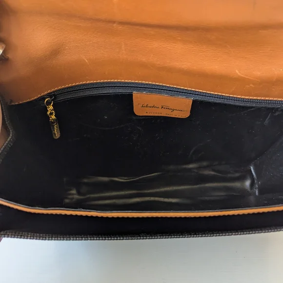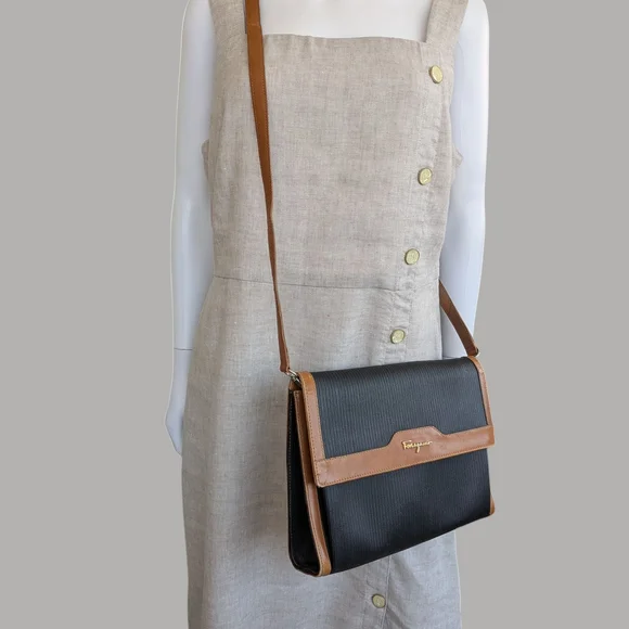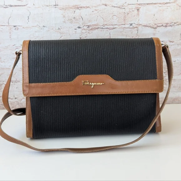 Salvatore Ferragamo Black and Tan Crossbody Bag with Classic Design