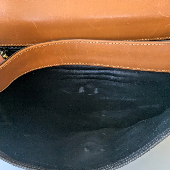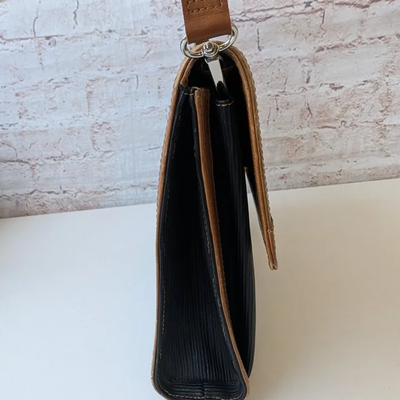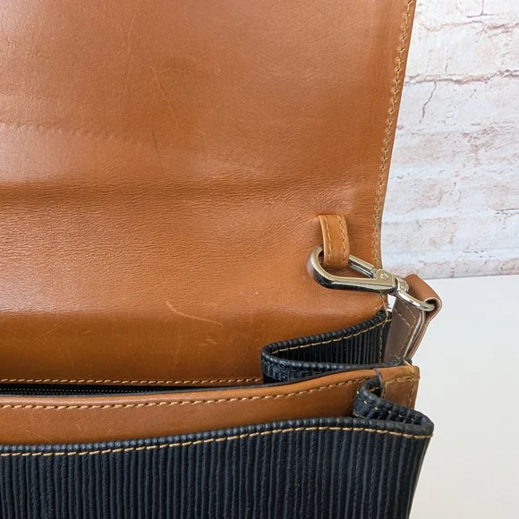 The Salvatore Ferragamo crossbody bag showcases a sophisticated blend of black and tan, offering a timeless and versatile accessory for any wardrobe. Crafted with precision, this bag features a structured silhouette and a sleek flap closure, embodying the brand´s commitment to elegance and quality. Its minimalist design and durable materials make it an ideal choice for everyday use, ensuring both style and functionality.Some signs of use no original strap Approximate Measurements.Length:12"Height:8"Width:3"Strap Drop: