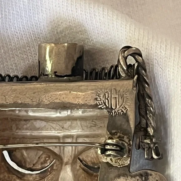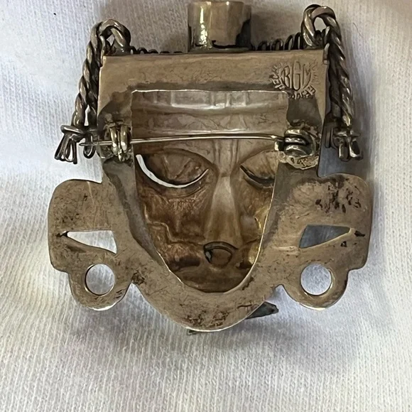 This is a vintage sterling tribal mask brooch made in Mexico and signed BGM. Amazing detail and nose ring.