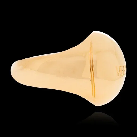 Versace Gold Color Metal Logo Engraved Statement Ring Sz 19