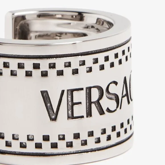Versace Silver Color Metal Logo Engraved Statement Cuff Ring Sz 17Product DetailsRetail Value: $380.00This is authentic Versace Silver Color Metal Logo Engraved Statement Cuff Ring SKU: ST-2999SKU2: 07.02.25.70Country/Region of Manufacture ItalyModel: 1015199 1A00620 4J750