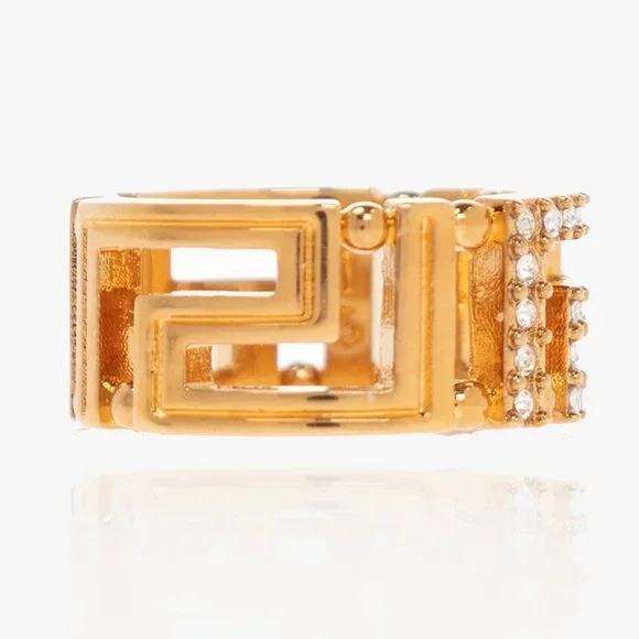 Versace Gold Color Metal & Strass Ring Sz 21Product DetailsRetail Value: $360.00This is authentic Versace Gold Color Metal & Strass Ring SKU: ST-2984SKU2: 07.02.25.70Country/Region of Manufacture ItalyModel: DG5H154 DJMX KCOT