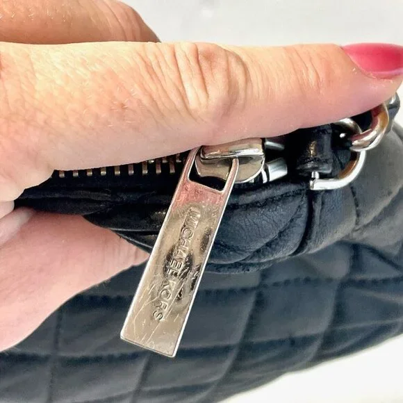 Michael Kors Susannah Quilted Messenger Bag Womens Black Leather Chain StrapCondition is Pre-owned ~ View photosStyle Messenger Size Small (measurements in photos)Color Black...