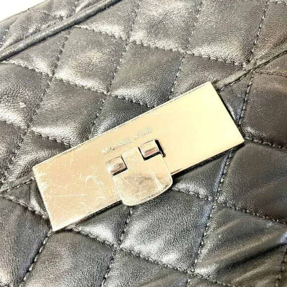 Michael Kors Susannah Quilted Messenger Bag Womens Black Leather Chain Strap