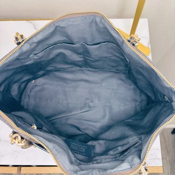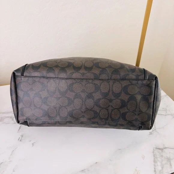 This Coach tote bag combines timeless elegance with modern flair, featuring a classic brown and gold color palette. The spacious interior and structured silhouette make it a...