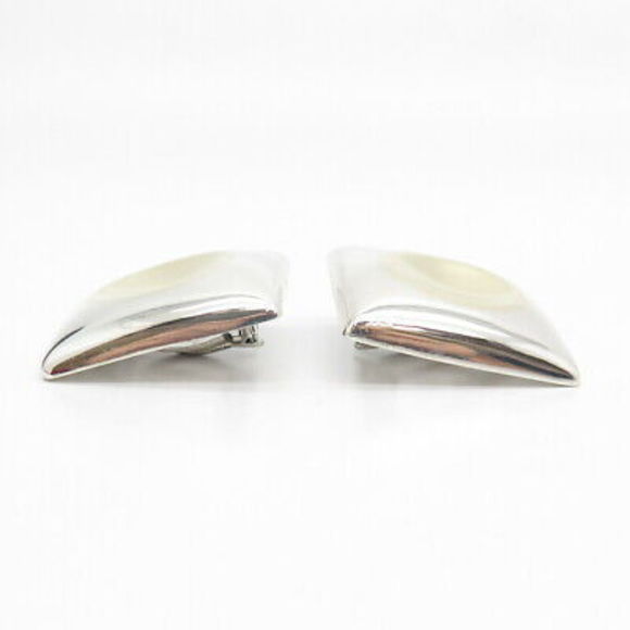 925 Sterling Silver 2-Tone Vintage Mexico Concave Clip On Earrings