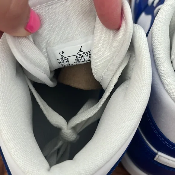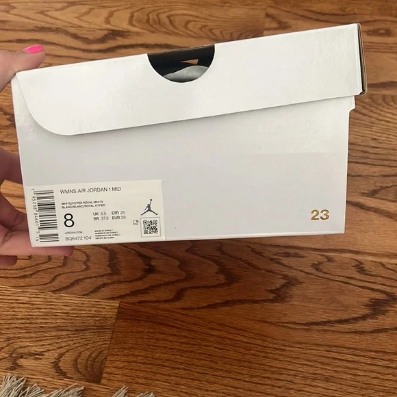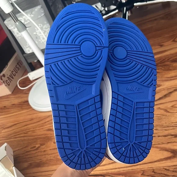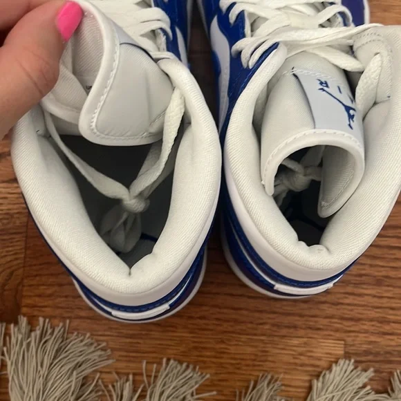 Jordan 1 mid hyper royal blue-brand new in box-women’s colorway size 8-white and royal blue-bottoms look like someone tried on in store, rest of shoe is in prestige condition